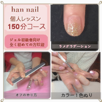 | 150分 | 30,000円 | セルフジェル基本コース150分① + 初心者セルフジェルキット付 帰ったらすぐに練習ができる!! |